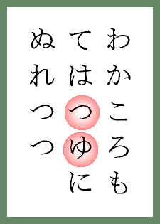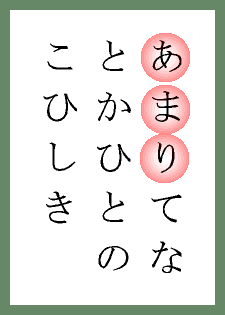 ≪備考≫ かるた会に「天津乙女の会」という会が存在するほど有名な覚え方です。 | |