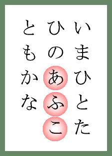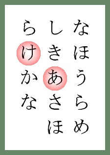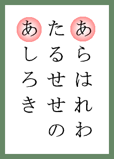 ≪備考≫ 札の画像を参照。無理矢理「あけ」と読みましょう。 | |
